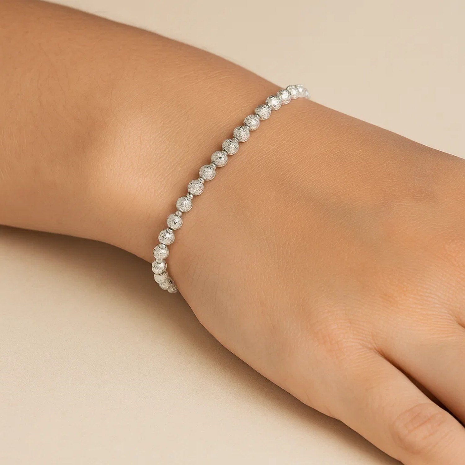 Elevate your jewelry collection with this exquisite 14K white gold chain, featuring disco diamond-cut beads that catch the light beautifully. Available in 7 inches lengths, this versatile piece can be worn as a bracelet. The secure lobster clasp ensures ease of wear, making it perfect for both everyday elegance and special occasions. Expertly crafted for lasting shine and durability, this chain adds a touch of sophistication to any ensemble.