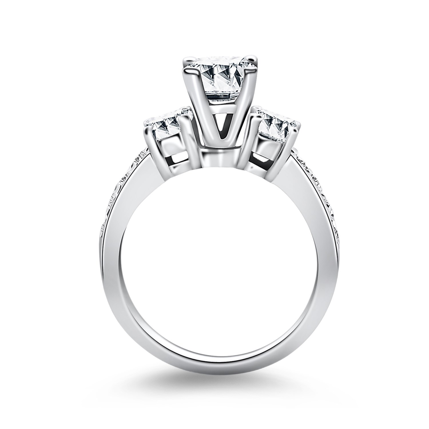14k White Gold Three Stone Engagement Ring with Diamond Band