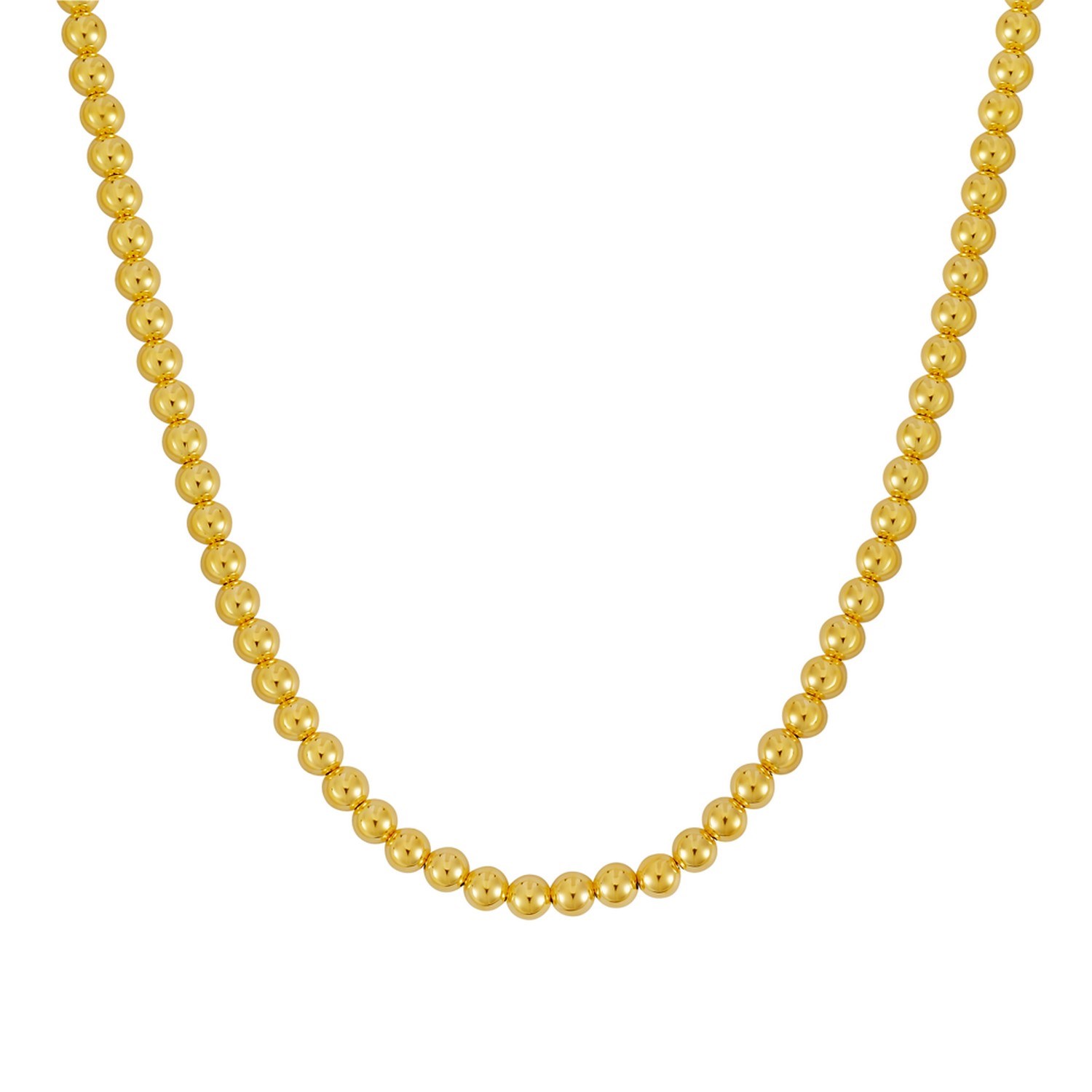 This 6mm Polished Bead chain is beautifully crafted in 14k yellow gold with a high polish finish and closes with a lobster clasp. Measuring 20 inches in length.