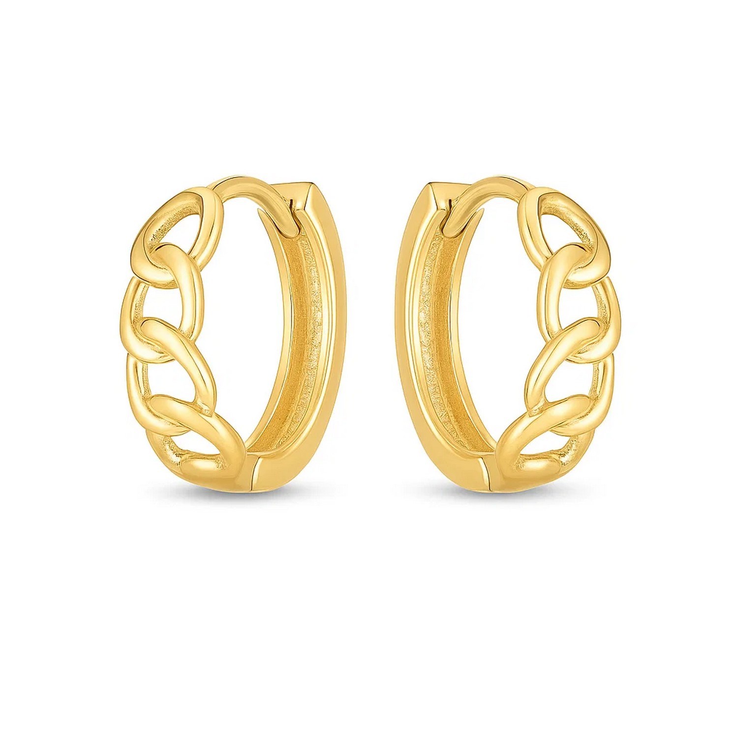 14k Yellow Gold Curb Huggie Hoop