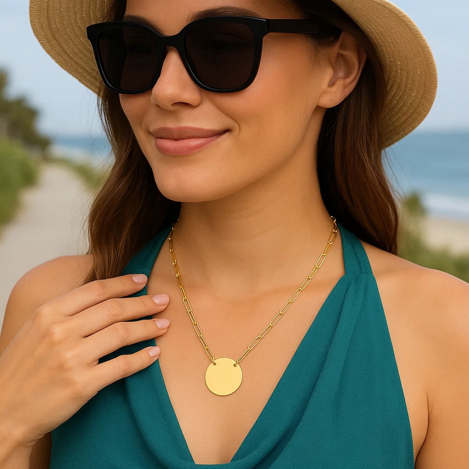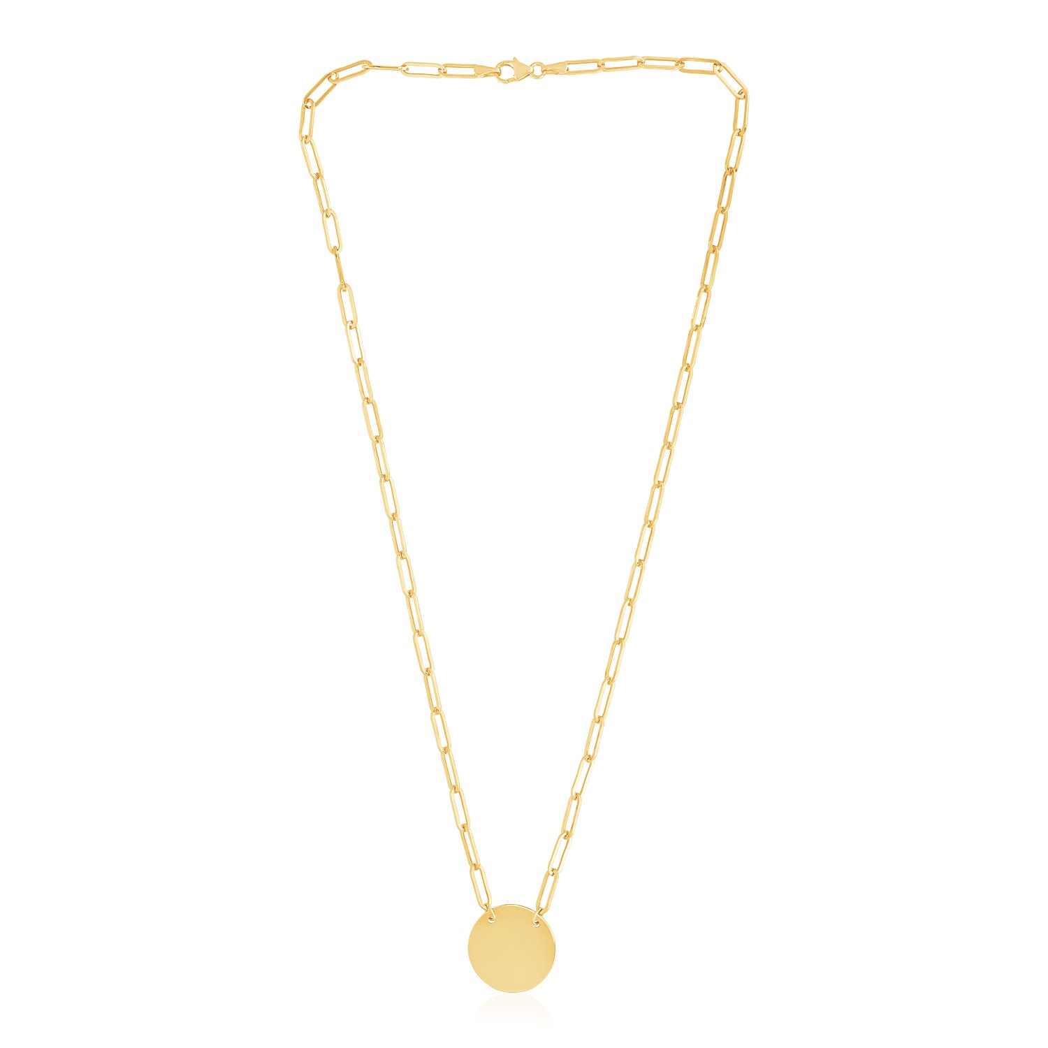 This Circle Disc Paperclip Link necklace is great cross between bold & delicate. Great for layering or wearing independently, a perfect addition to add to anyone’s collection. Crafted in 14k yellow gold with a high polish finish & a lobster clasp closure. Available in an 18 inches length.