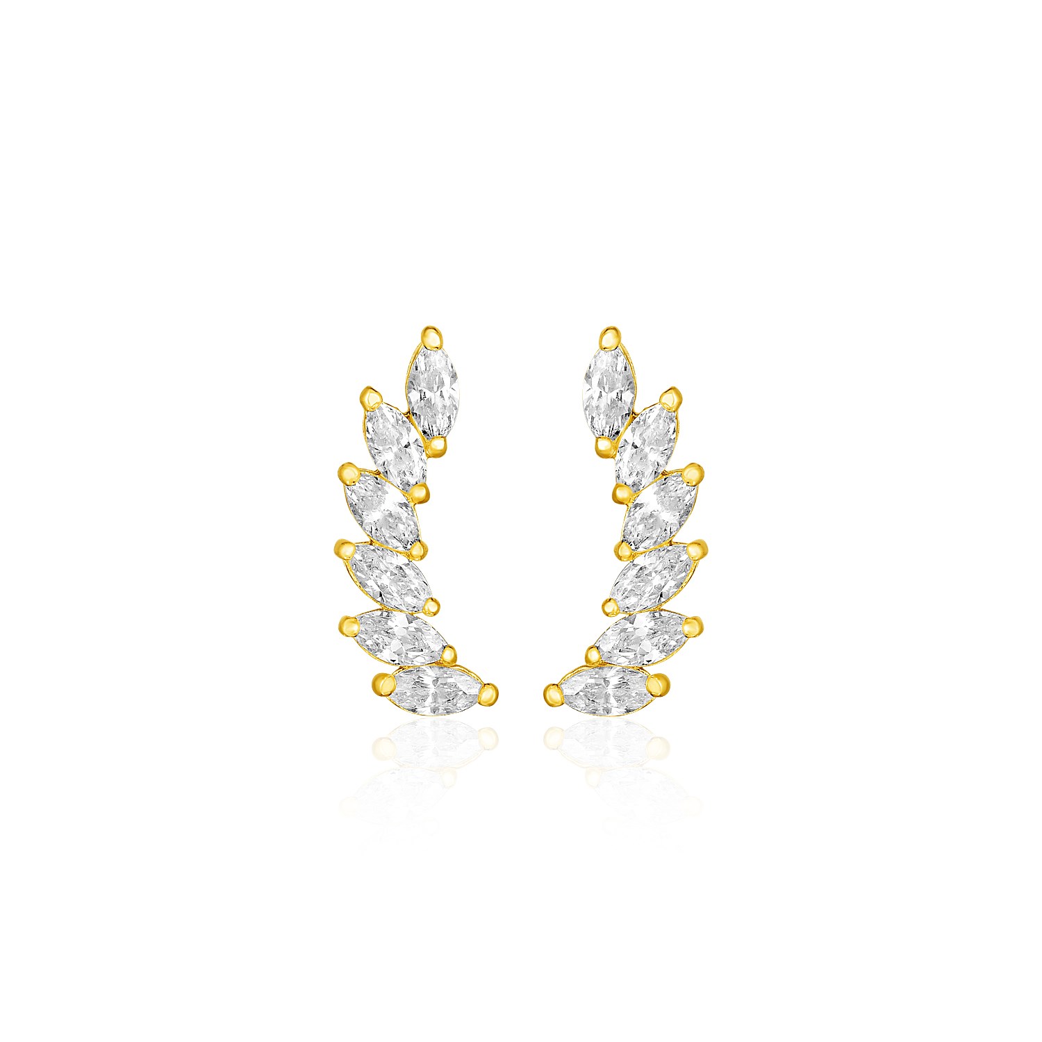 Leaflike sets of gorgeous marquise style cubic zirconias decorate elegant 14k yellow gold in these eye-catching ear climber earrings. Post earrings are 14.9mm long and are held in place by pushback clasps.