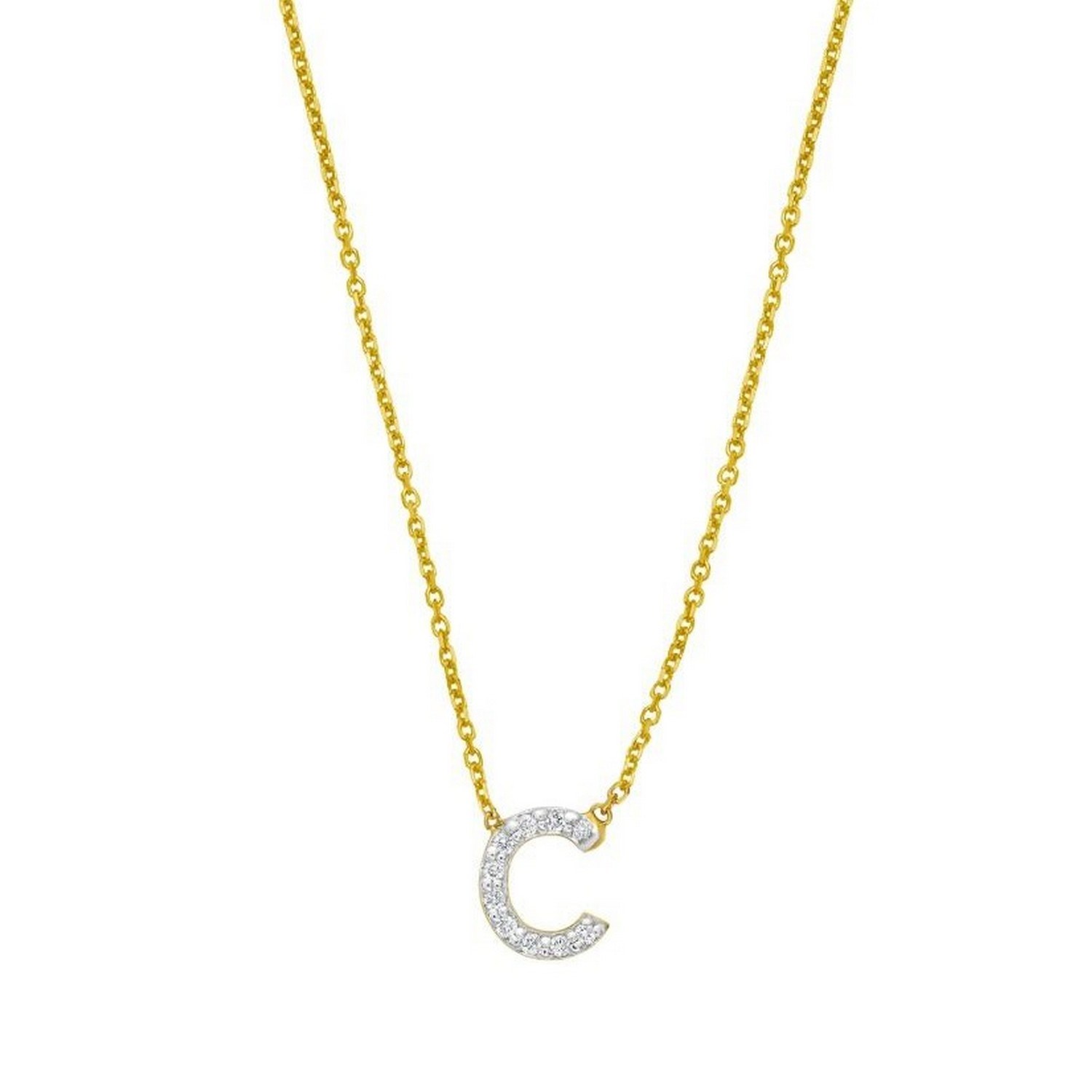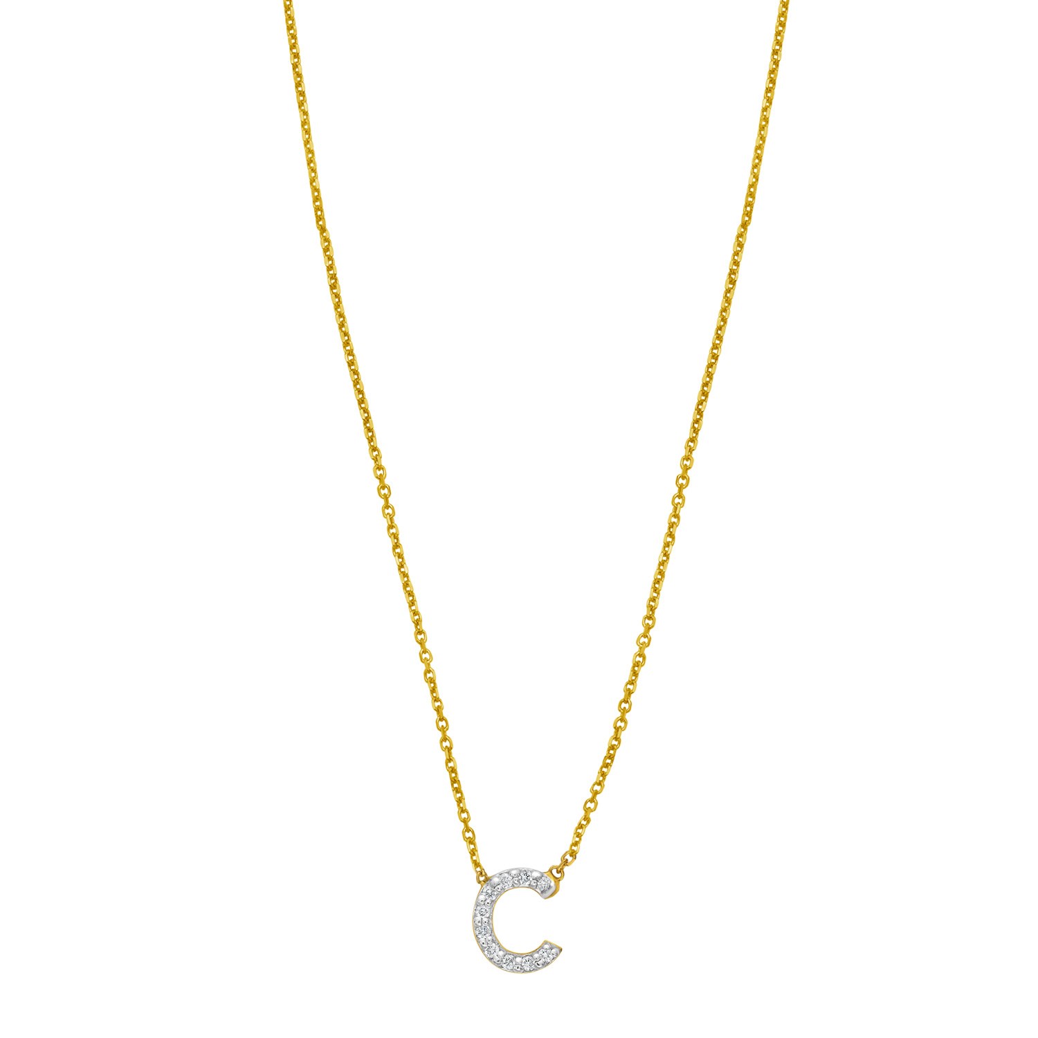 Celebrate individuality with this 14K yellow gold mini diamond C initial pendant. Adorned with sparkling round diamonds, this dainty yet elegant piece adds a personal touch to any look. Perfect for everyday wear or as a thoughtful gift, it comes with an 18 inches chain and a secure spring ring clasp for lasting beauty and comfort.
