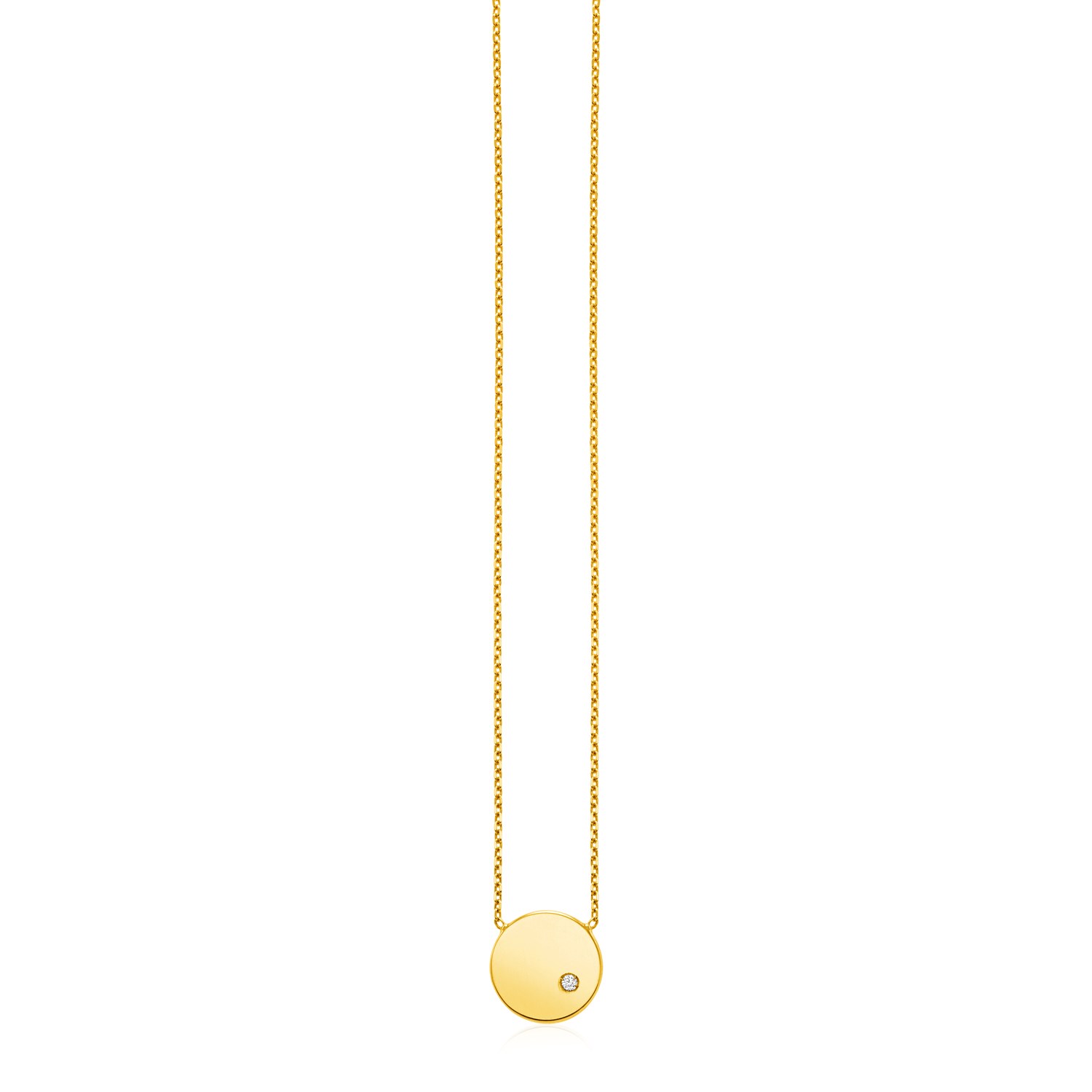14k Yellow Gold Necklace with Polished Round Pendant with Diamond