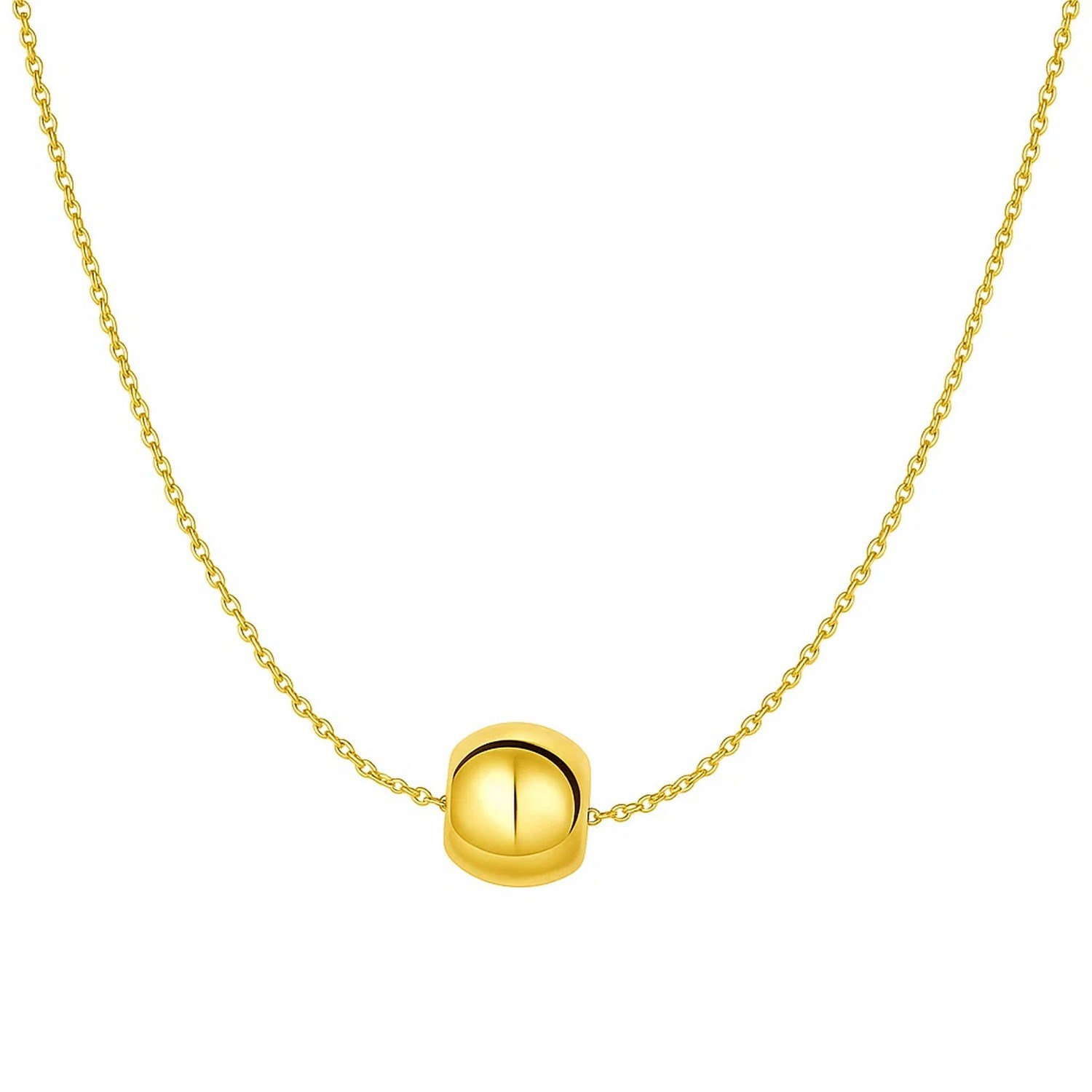 A delightful barrel bead in shiny finish showcases the charming style of this chain necklace. Crafted in 14k yellow gold, this comes in size 18 inches and is secured with a lobster lock.