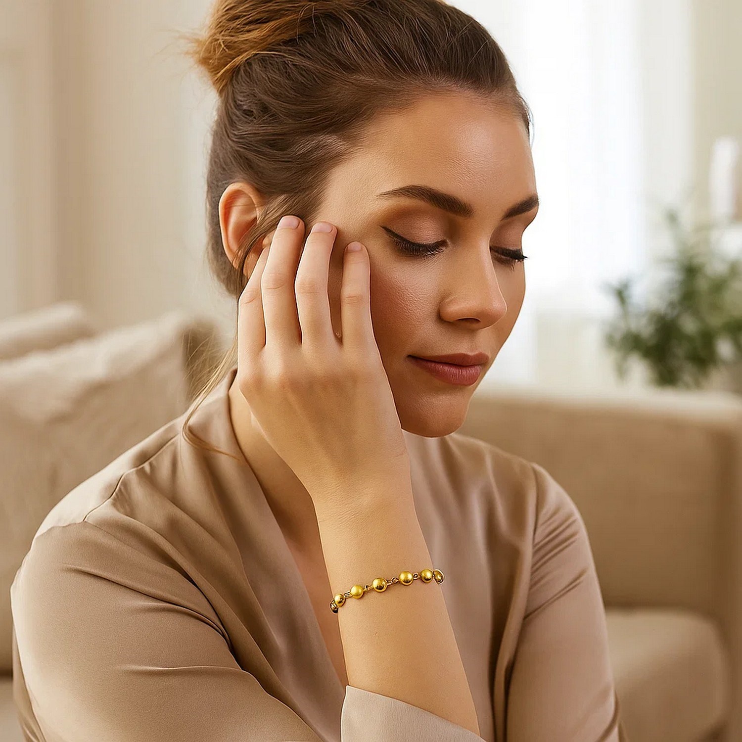 Elevate your elegance with this 14K yellow gold bracelet, featuring alternating polished and satin-finish pebble beads. Measuring 7 1/4 inches in length, it offers a comfortable fit secured by a pear-shaped lobster clasp. The unique combination of textures adds a sophisticated touch, making it perfect for both everyday wear and special occasions. Expertly crafted for lasting beauty, this bracelet is a timeless addition to any jewelry collection.
