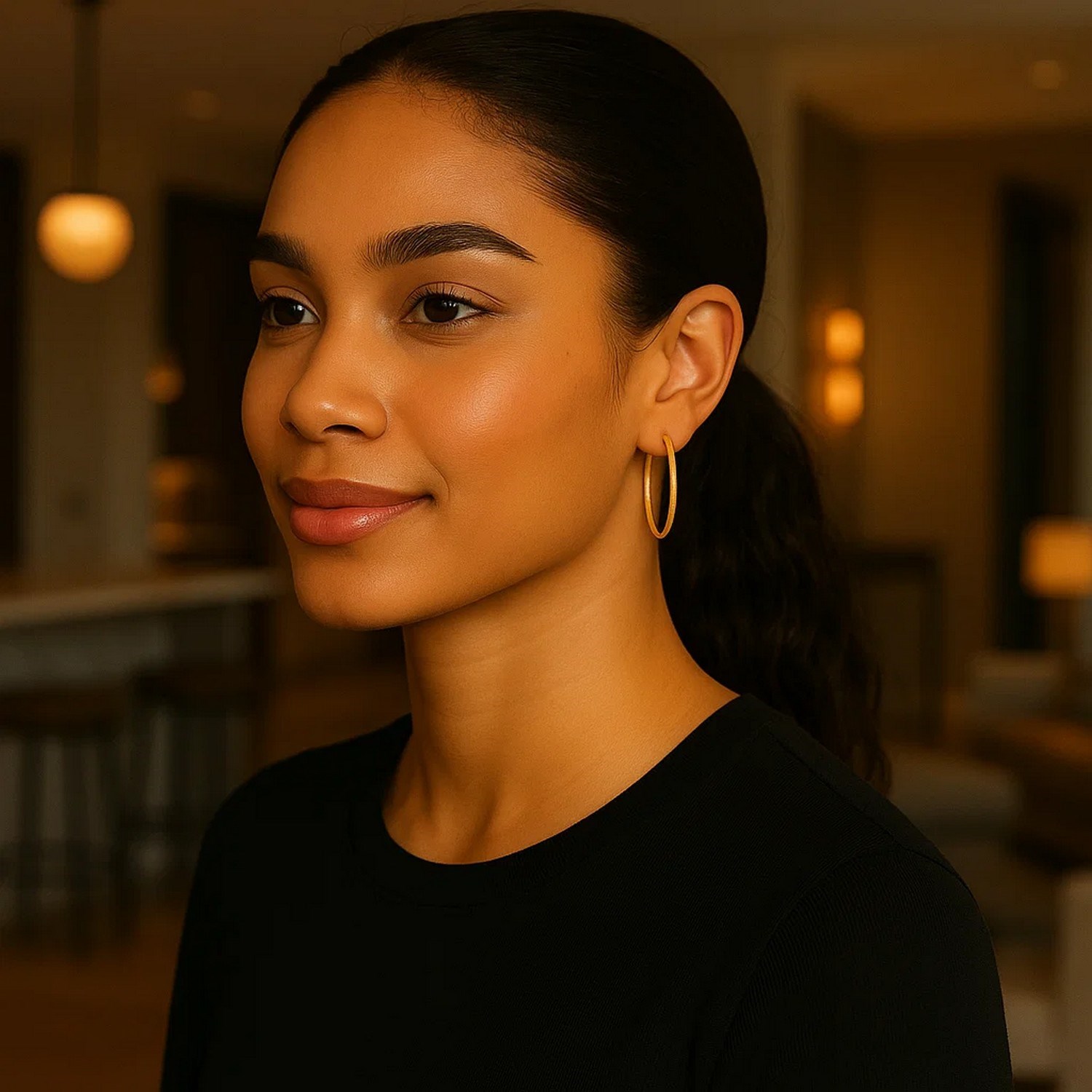 These timeless hoop earrings crafted in 14k yellow gold and measure 25 millimeters in diameter, featuring a snap lock backing.