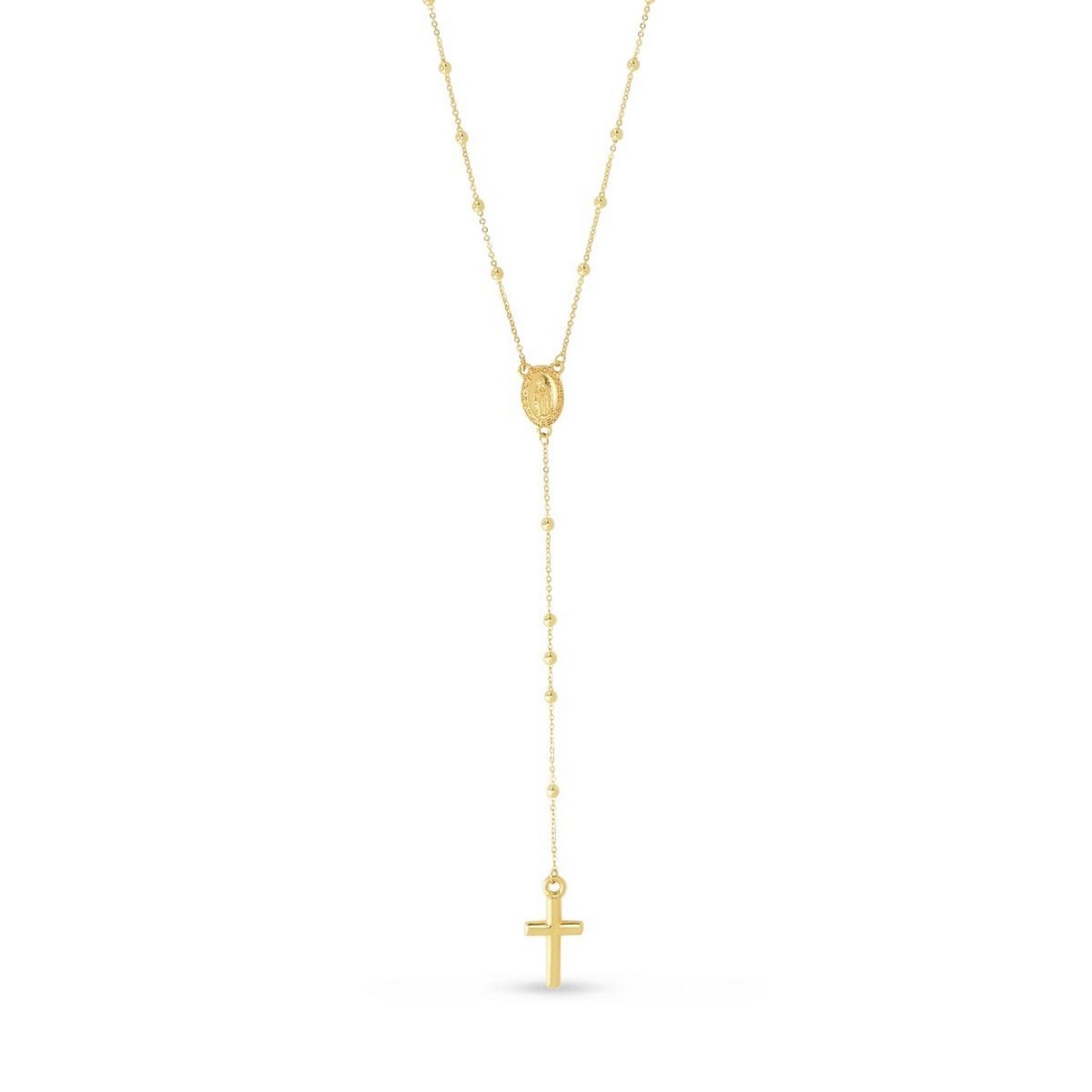 The inspiration of dazzling 14k yellow gold meets the traditional motifs of a classic rosary in this glorious necklace. Necklace is 26 inches long.