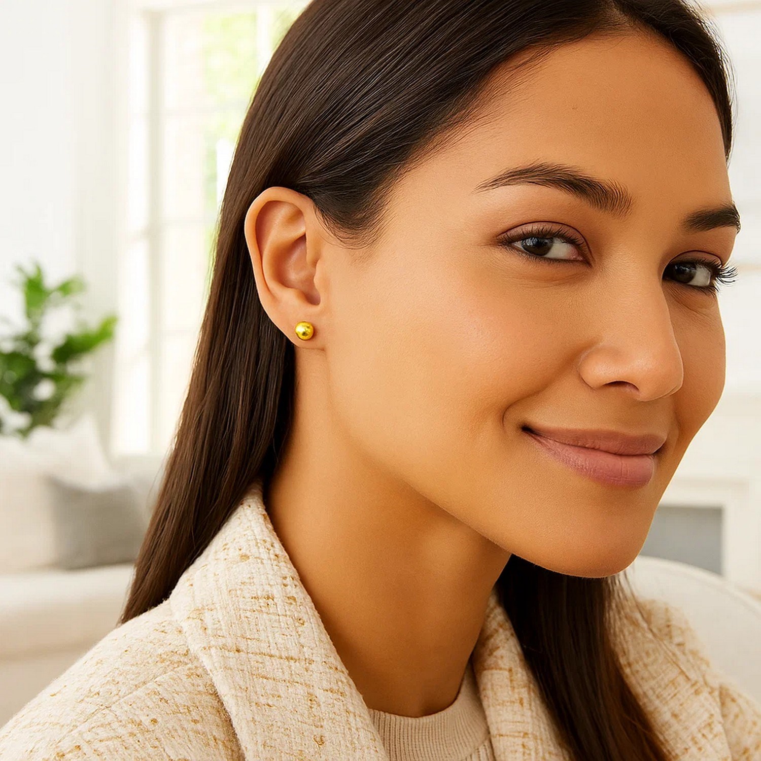 These spherical stud earrings exude understated elegance. Designed in 14k yellow gold.
