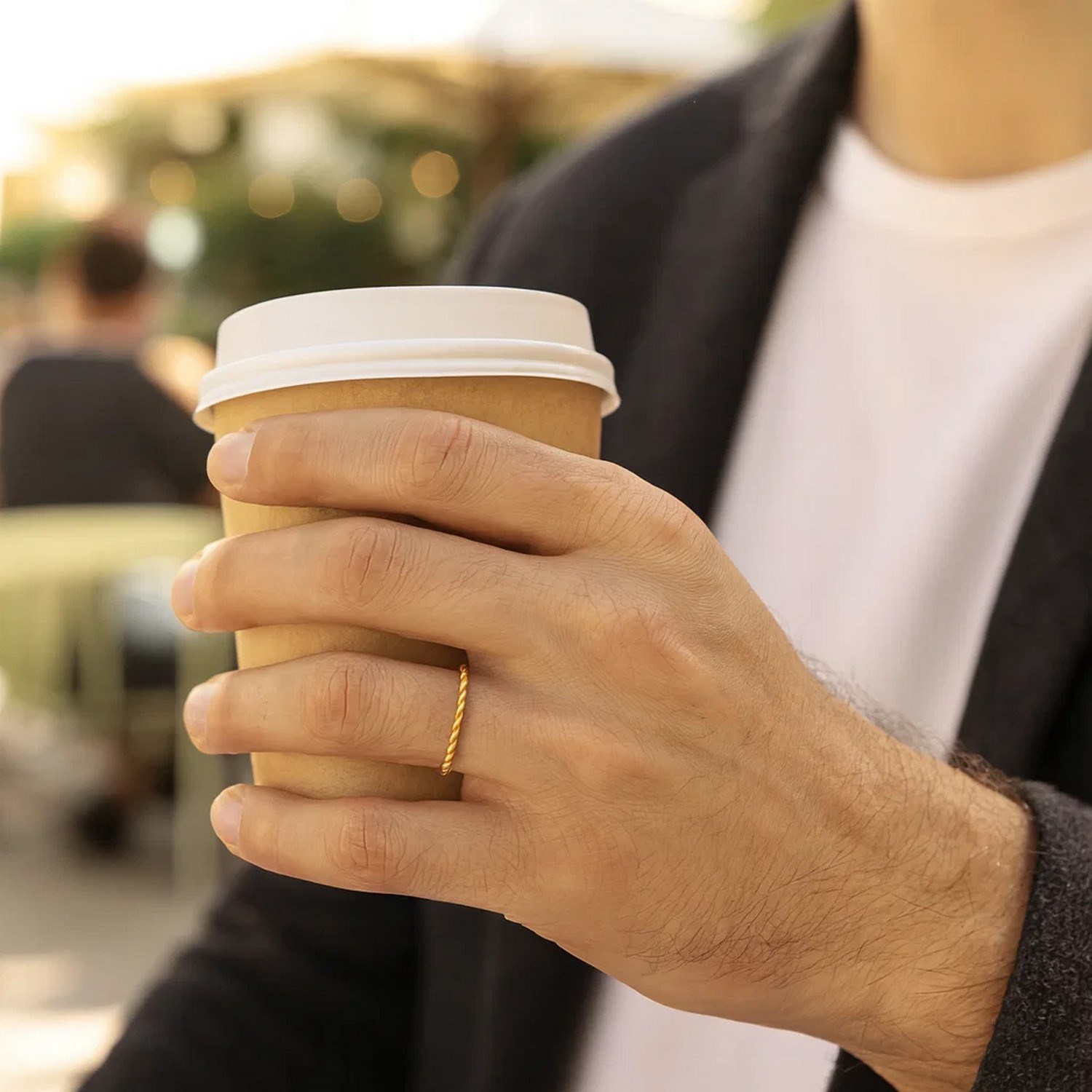 14K Yellow Gold Twisted Stackable Ring featuring an elegant twisted design crafted in solid 14K yellow gold. Its slim profile makes it perfect for stacking or adding a subtle touch of texture to any jewelry combination.