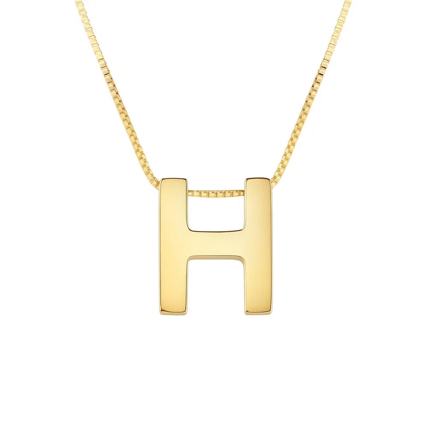 This 14K yellow gold Yours Truly block letter initial H necklace features a polished block-style letter pendant on a delicate chain. Its warm golden shine and personal touch make it perfect for everyday wear, meaningful gifting, or layering with your favorite pieces.
