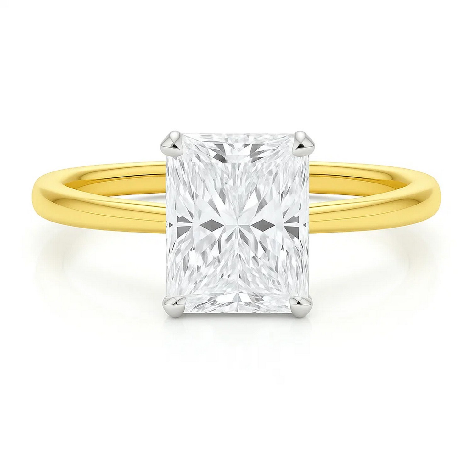 Make every moment unforgettable with this breathtaking 5 carat radiant-cut lab-grown diamond solitaire ring where classic elegance meets modern sophistication. IGI certified and graded G color with VS1 clarity, the diamond shines with exceptional brilliance and trusted quality. Set in a secure four-prong 14K white gold head and paired with a polished 14K yellow gold band, the timeless two-tone design offers a bold yet refined contrast that complements any style. Ideal for engagements, anniversaries, or meaningful milestones, this ring is more than just a stunning accessory it’s a lasting symbol of love, commitment, and forever.