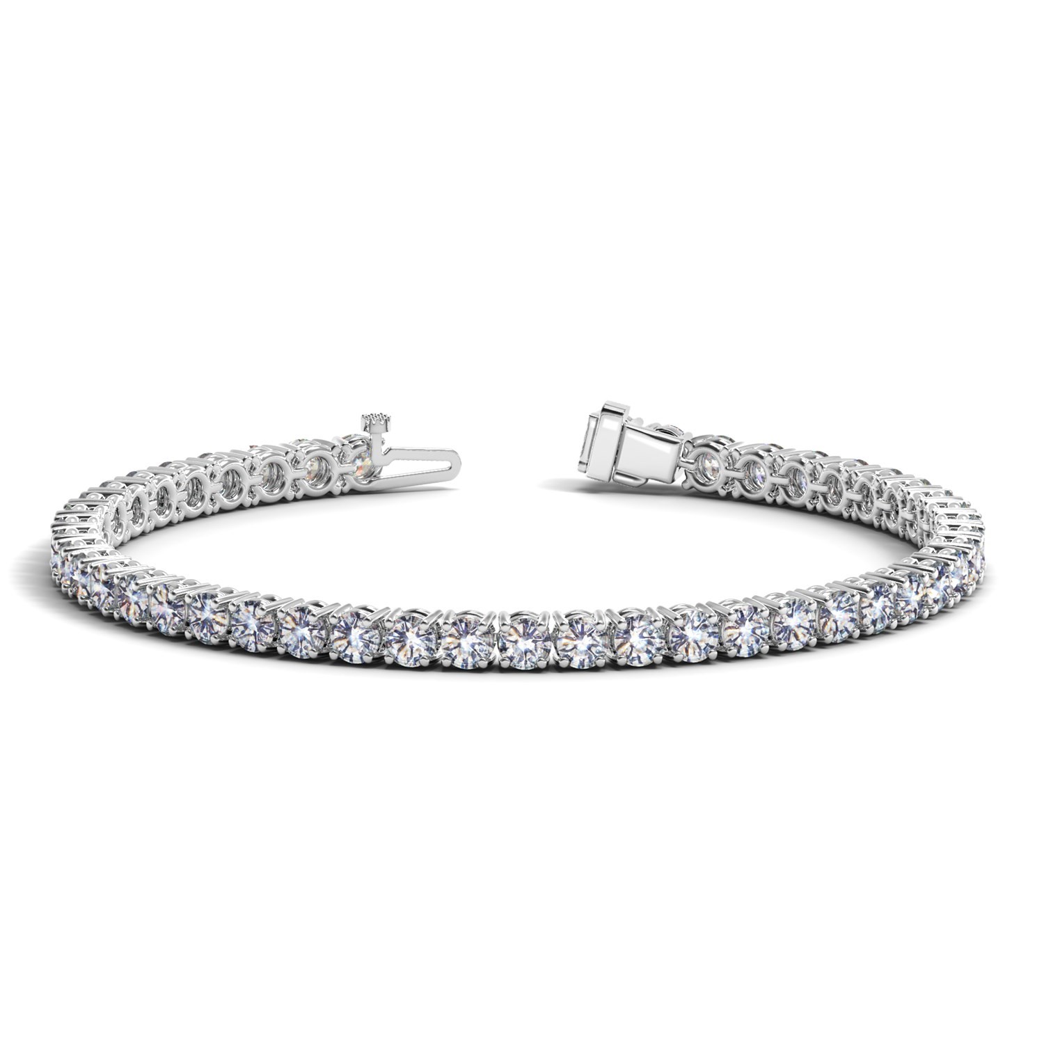 Classic four prong 10 carat total weight diamond tennis bracelet showcasing perfectly matched brilliant round cut lab grown diamonds set in 14k white gold.