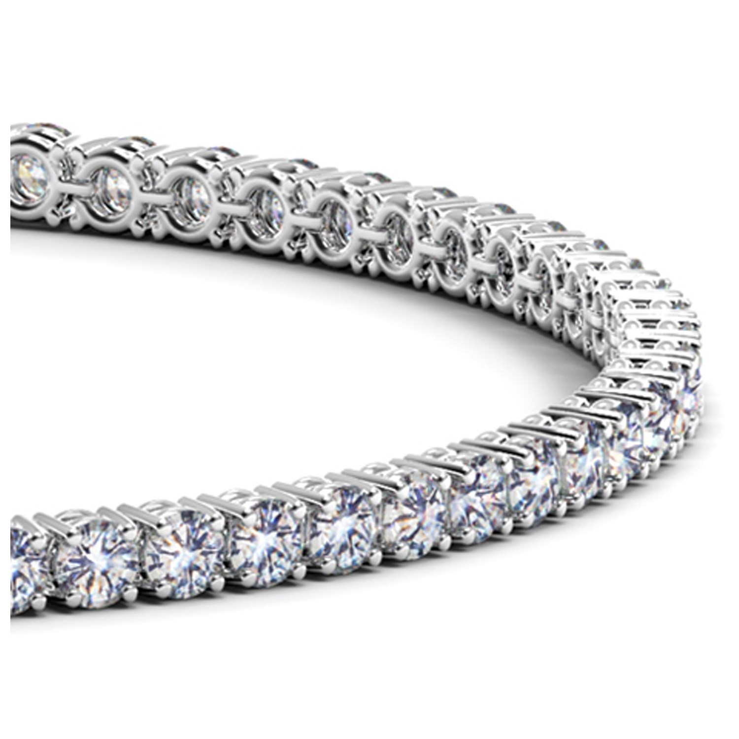Classic four prong 4 carat total weight diamond tennis bracelet showcasing perfectly matched brilliant round cut lab grown diamonds set in 14k white gold.