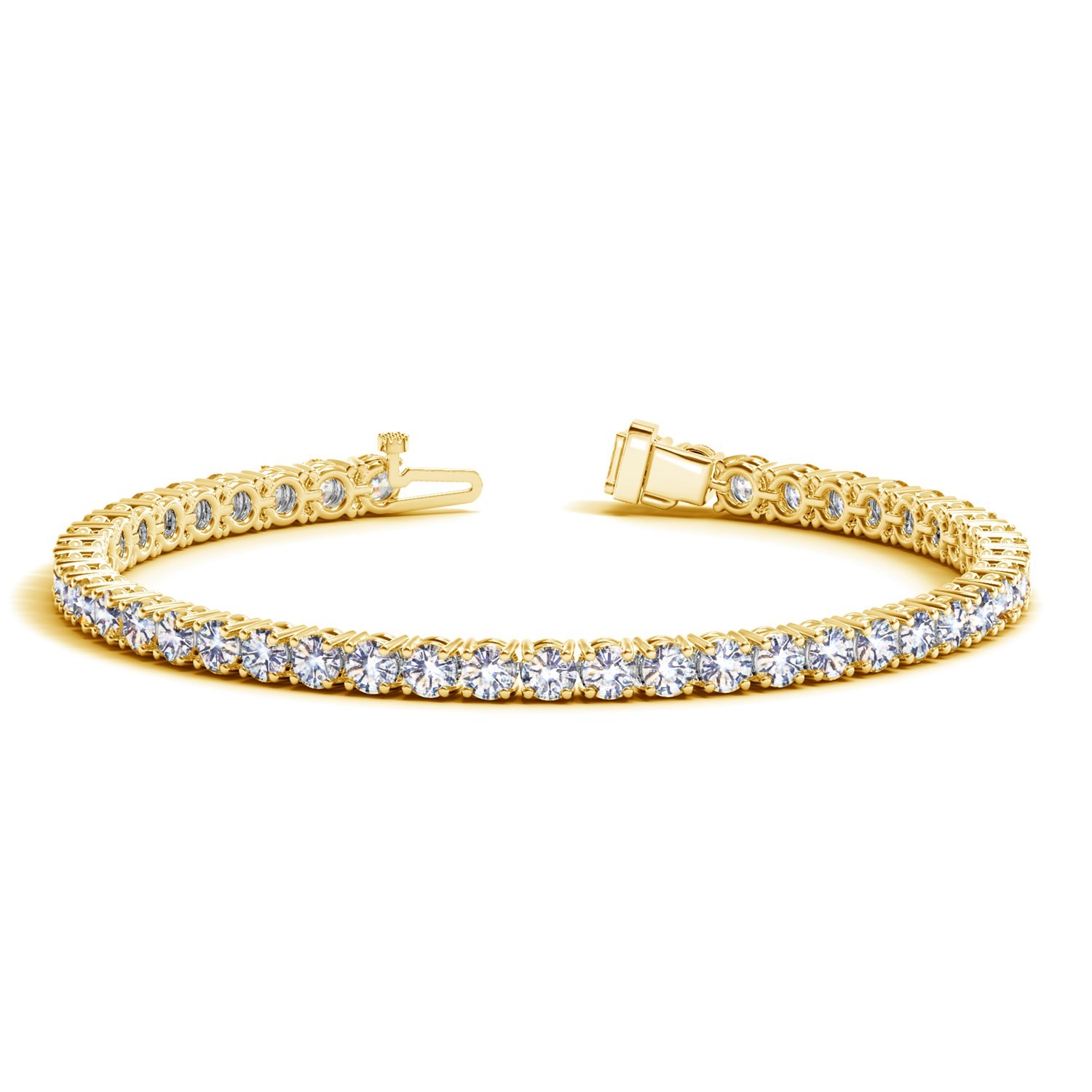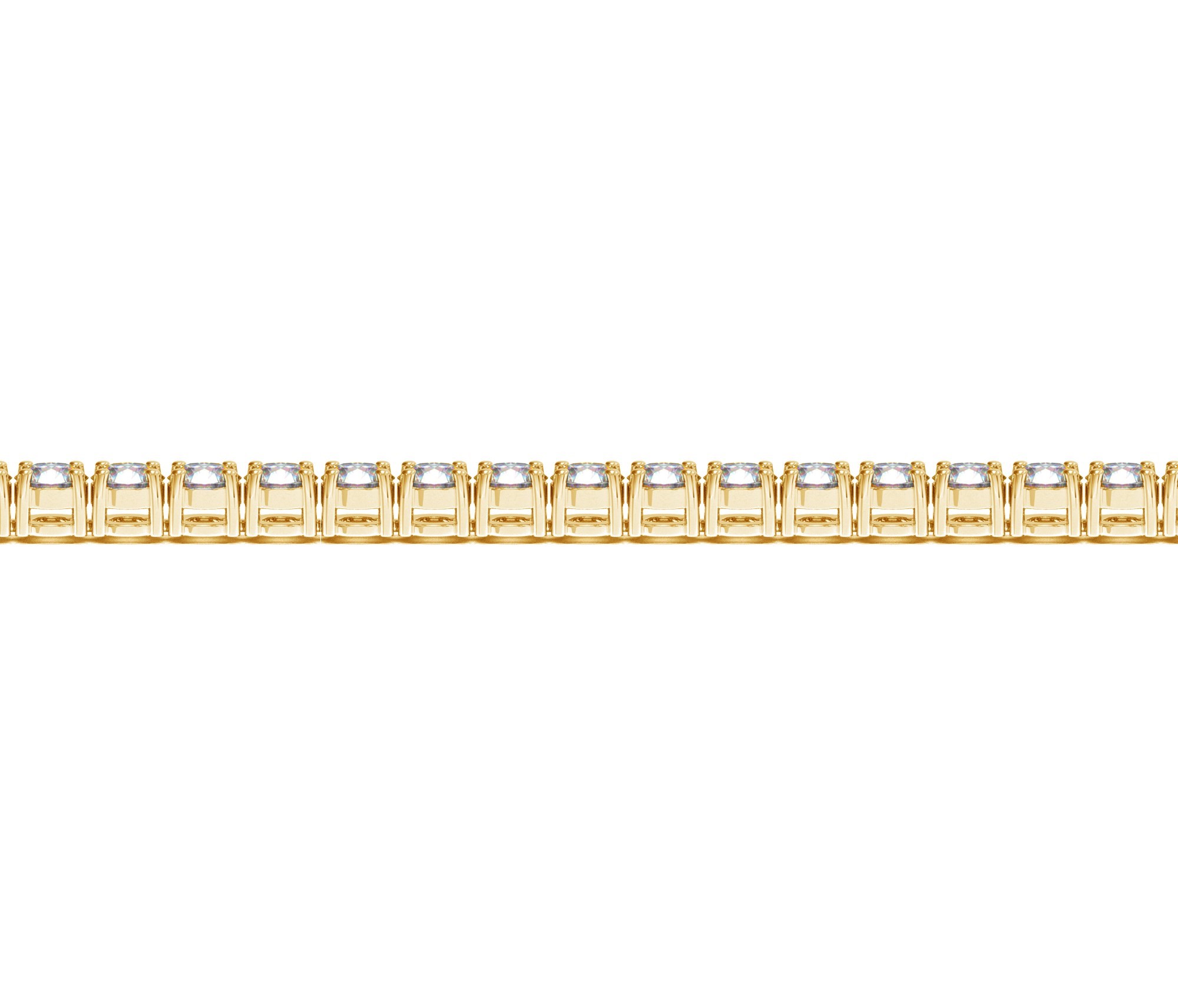 Classic four prong 10 carat total weight diamond tennis bracelet showcasing perfectly matched brilliant round cut lab grown diamonds set in 14k yellow gold.